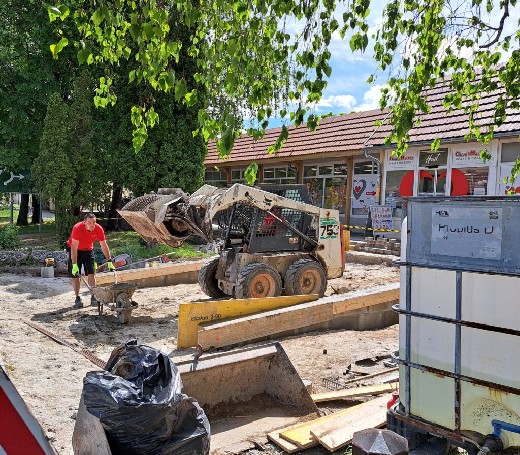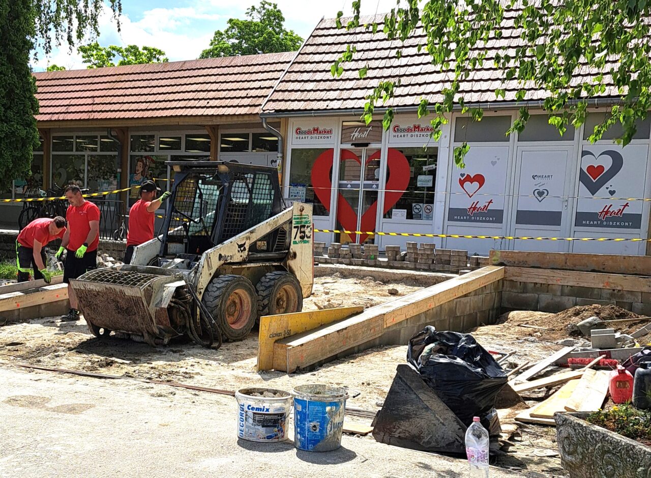 Az arra járók már láthatták, hogy a Városházával szembeni bolt előtti területen elkezdődött a balesetveszélyes lépcső lebontása. A boltok előtti sétáló rész az ÁFÉSZ tulajdona, de e között és a járda közötti terület az önkormányzaté. Elbontották a lépcsőt és a korábbi feljárót, majd teljesen új, akadálymentes feljárót alakítanak ki, középen korláttal.