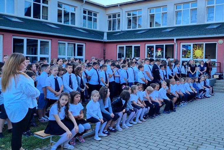 A II. Rákóczi Ferenc Német Nemzetiségi Nyelvoktató Általános Iskolában szeptember 1-én, hétfőn reggel, a tanév első napján tartották meg az ünnepélyes tanévnyitót. Itt a 230 tanuló, közül 27 kis elsős — Gáspár Anikó tanító néni vezetésével — várta az első becsengetést. Az új kisdiákok büszkén fogadták az iskolához való tartozásukat jelképező nyakkendőt.
