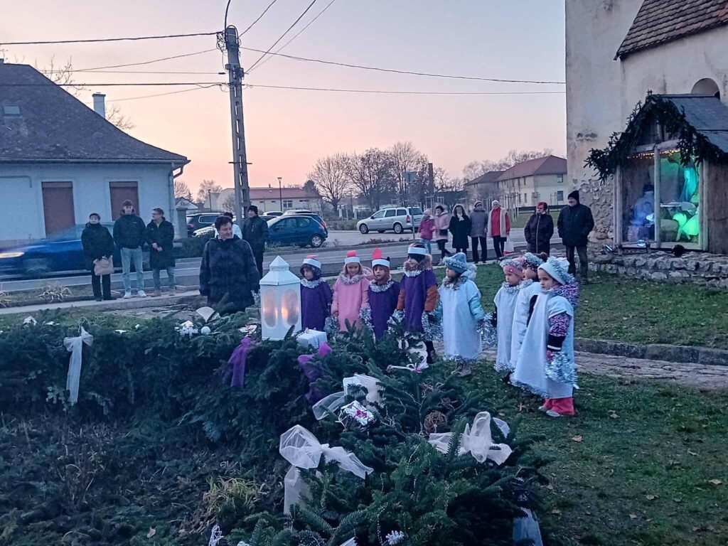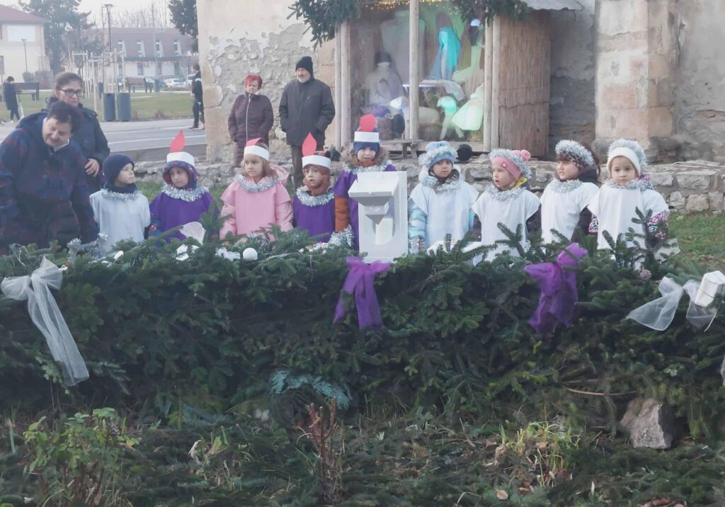 Idén – ahogy már nem először a helyi óvodások, ezúttal a Süni Napköziotthonos Óvoda Napocska csoportja ajándékozta meg meghitt, szívhez szóló műsorral a közönséget. Az adventi koszorú első, a hitet jelképező gyertyáját Simon László atya áldotta meg, és lobbantotta lángra.