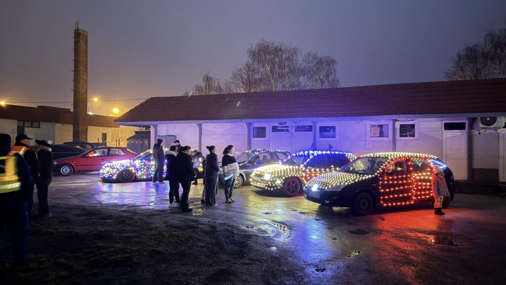 Közben a résztvevők komfortérzetéről a is gondoskodtak, hiszen a sátorban rengeteg finomságot kínáltak a szervezők: karácsonyi mákos és diós bejgli, mézes és egyéb süti várta az ünneplőket, de a nyirkos hidegre tekintettel, a forró csoki és tea, meg a forralt bor is jól jött, hiszen – bár a műsornak vége lett, de időközben a Bezerédi téren már a csodálatosan kidíszített járművek kezdtek gyülekezni, innen indult ugyanis a Karácsonyi Csillag elnevezésű, fénnyel teli autós felvonulás, amit idén második alkalommal szervezett meg Pénzes Norbert. Két, három, négy, vagy akár több kerékkel rendelkező járművek sorakoztak fel egymásután, hogy körbejárják Berhida utcáit, és káprázatos fényeikkel lenyűgözzék a lakosságot, némi vidámságot és egy kis csodát hozva a közeledő ünnepre várva. A műanyag kismotorok, a kerékpárokon, rollereken és motorokon, valamint a személyautókon át a traktorokig vonultak fel a gondosan felékesített, fénylő járművek. Remek látvány, nagyszerű élmény volt kicsiknek, nagyoknak egyaránt!