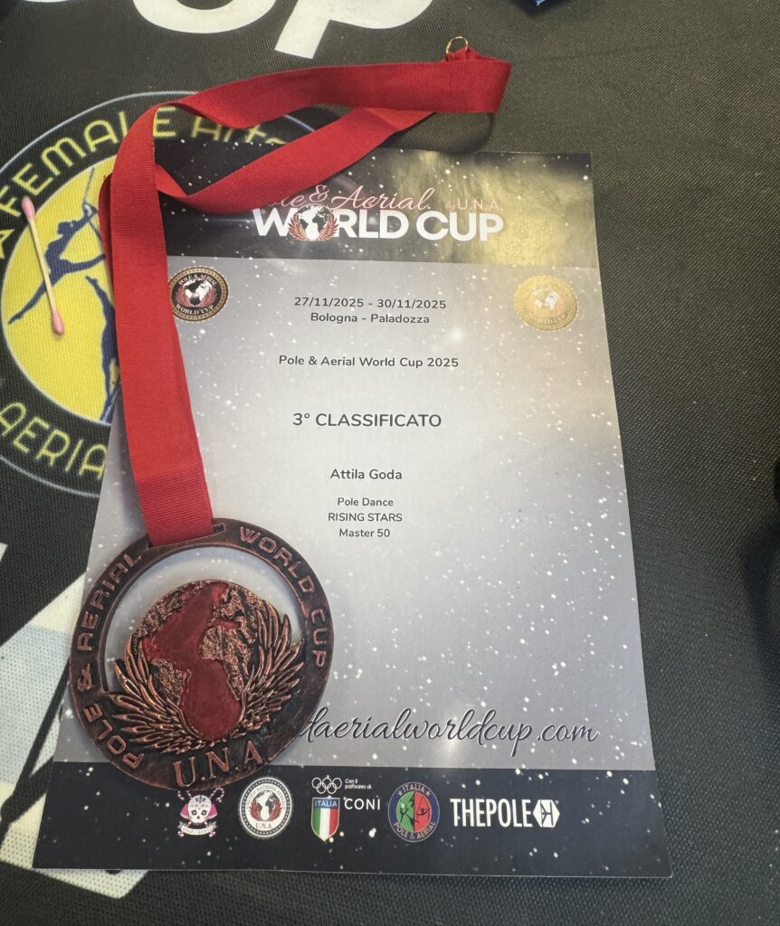 A fotókról: Goda Attila ugyan említést tett arról, hogy szabadidejét gyakran edzéssel tölti, arra azonban nem tért ki, hogy tulajdonképpen nem csupán egyszerű testedzésről van szó, hanem egy igencsak ritka sportot űz, ráadásul nem is akármilyen sikerrel! Legutóbb tavaly, a Bolognai Pole & Aerial by U.N.A. World Cup rúd és légtorna nemzetközi megmérettetésén szerezte meg a harmadik dobogós helyet. De erről talán majd egy legközelebbi alkalommal faggatom a szociális intézmény vezetőjét. Addig is eredményes munkát kívánok a hivatásában, valamint sok sikert az általa űzött különleges sport terén!