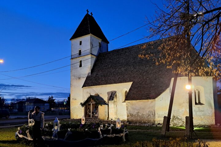 A templom előtti, frissen felújított kőkeresztet és az ott felállított Szent László szobrot, valamint a katolikus közösségi ház…